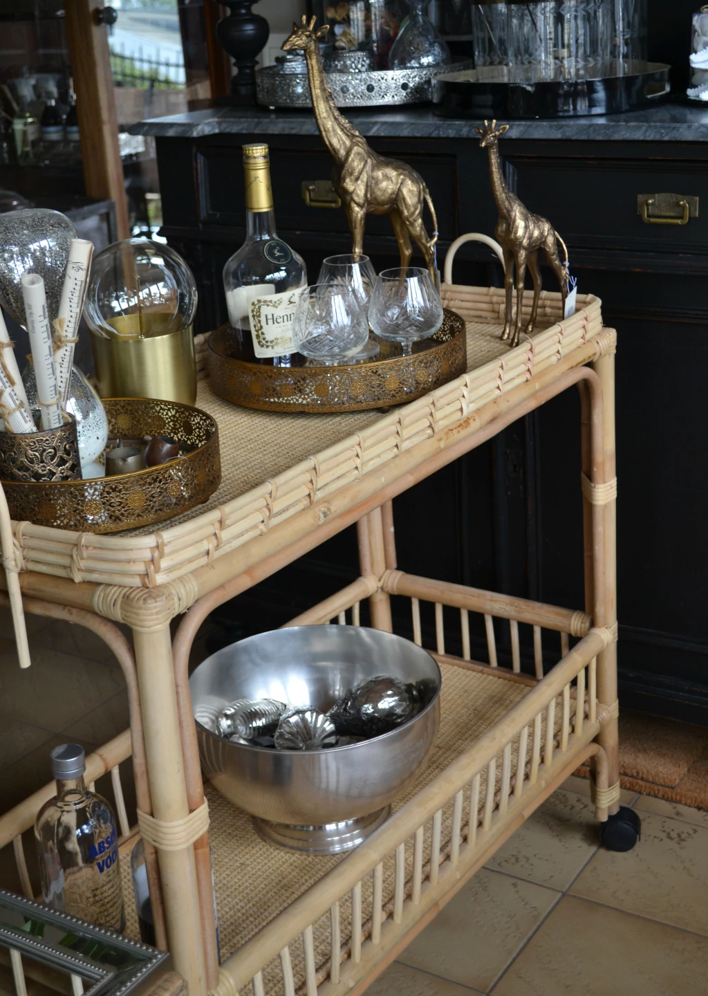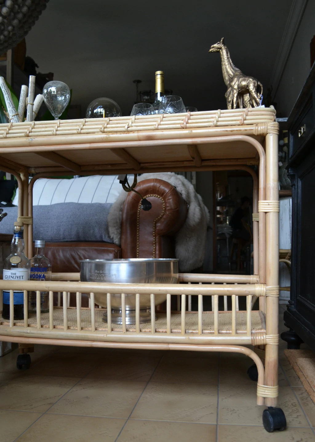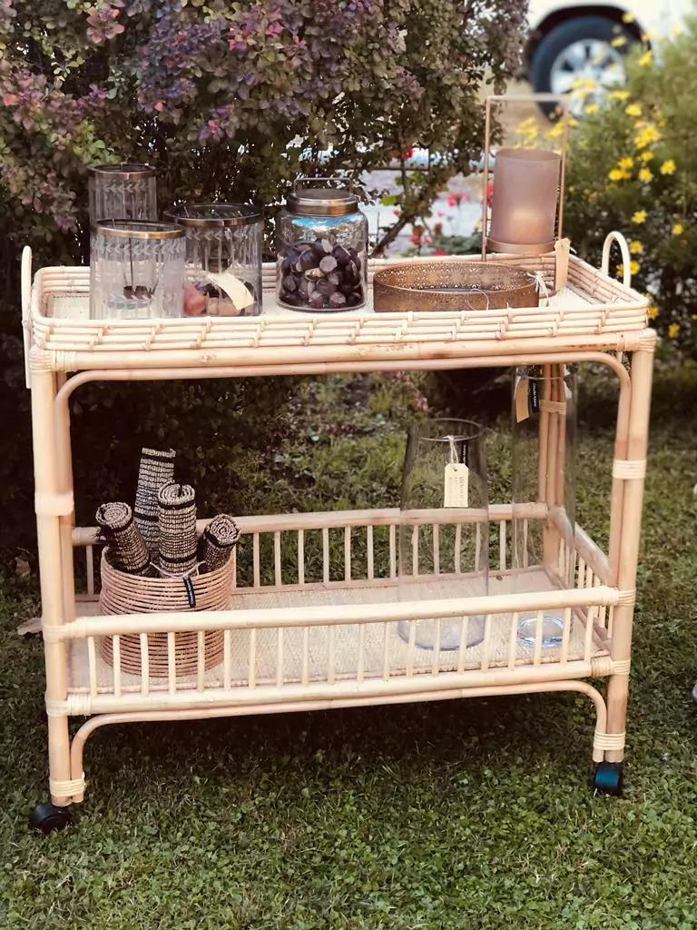 Carrito Bar de rattan